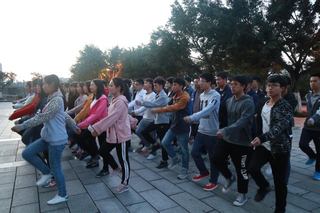 训练伊始,黄明靖书记发表讲话。她首先对同学们连日来坚持不懈的训练表示感谢;运动会是9728太阳集团一年一度重大体育盛事,也是展现我院学生风采的良好契机,她要求同学们认真刻苦训练、做好每一个动作,把我院良好形象展现在全校师生面前;最后,她提到,在训练过程中同学们要遵守纪律,不能随意发表不当言论,有任何困难,要理性表达诉求,学院会尽力帮助同学们解决问题。训练过程中,黄书记和辅导员们也参与其中,并对动作不规范的同学进行及时纠正。