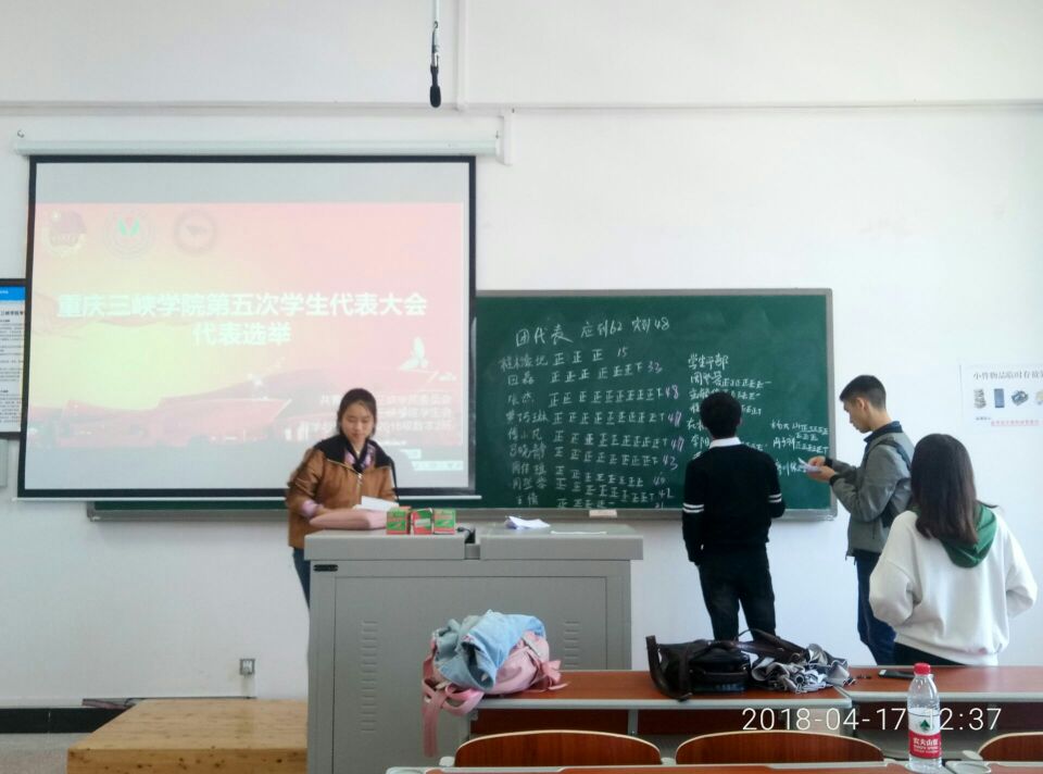 2018年4月17日下午,我院2015级、2016级、2017级全体学生在各班团支书及班委的组织下,开展了共青团重庆三峡学院第五次代表大会与重庆三峡学院第五次学生代表大会的代表选举工作。