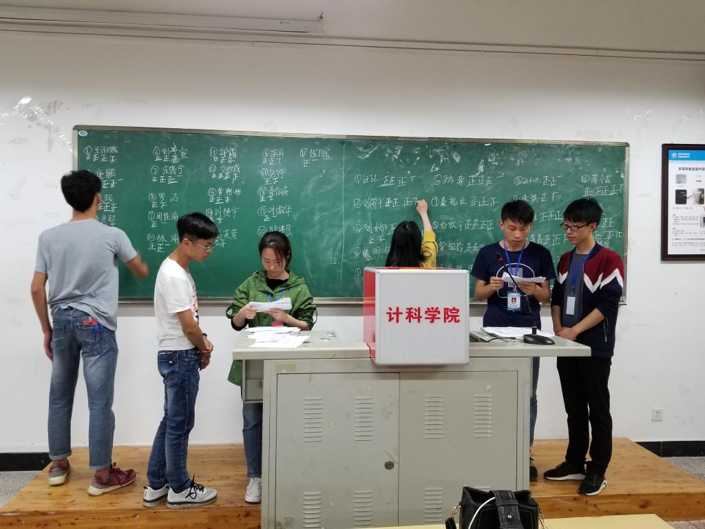 4月18日,计科学院团总支、学生会选区开展了校第五次团、学代会正式代表的选举工作,由28个团支部和班级的100余名团员、学生代表参加了选举,选举工作由团总支书记袁颖主持。校团委青年服务中心主任张专、团委组织部部长王燚,校学生会副主席何涛到场观摩。