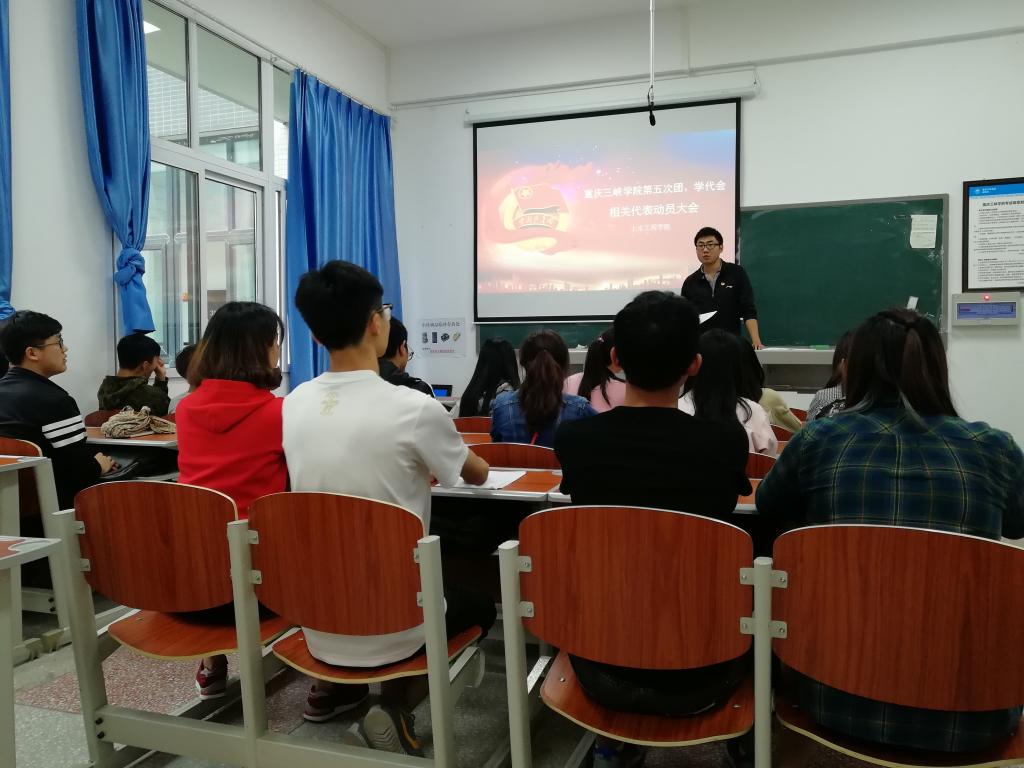 为确保重庆三峡学院第五次团、学代表大会的顺利召开,5月10日下午土木工程学院在D1-308教室召开了团学代会代表培训动员会暨代表出征仪式。会议由团总支副书记洪鹏老师主持,我院全体团、学代会代表参会。