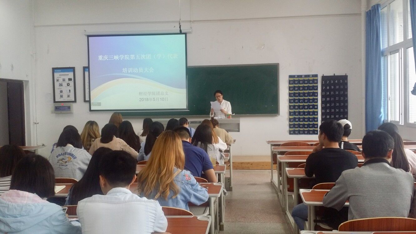 为确保重庆三峡学院第五次团(学)代表大会顺利召开,5月10日12:10,财经学院团总支在C-405教室召开团(学)代表培训动员大会,学院35名团(学)代表参会,学院团总支书记代小菊老师主持会议。