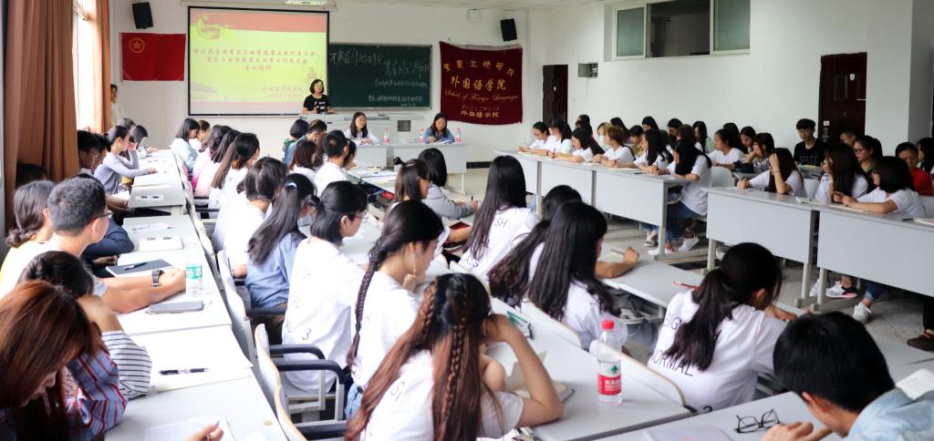 5月25日16:30,外国语学院团总支组织全体团学干部在一教219教室学习校第五次团学代表大会重要精神。外国语学院党总支副书记黄琰、团总支书记杨华、2017级辅导员任红营老师出席了本次活动。