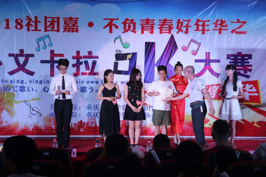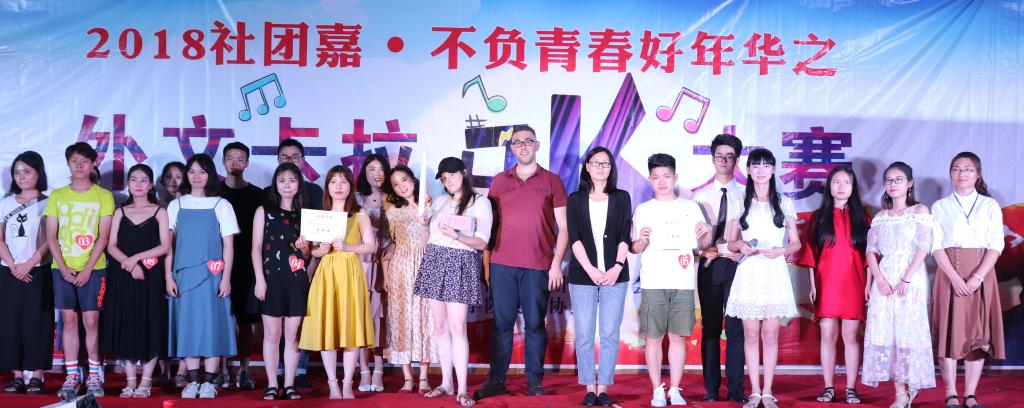 6月10日19:30,9728太阳集团社团嘉﹒不负青春好年华周末社团沙龙外文卡拉OK大赛决赛在2教104顺利闭幕。外国语学院英语系王浩、汪伟玲老师,英文外教Tara、Gregory、日语外教伊九美峰雄担任此次比赛评委。本次活动由9728太阳集团英语协会承办。