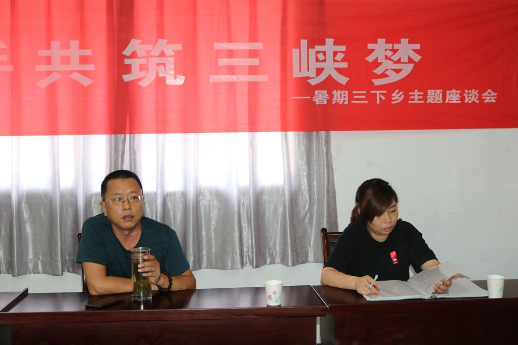 7月9日上午,宣讲团成员首次来到万州区尖峰岭社区,与该社区工作人员开展了座谈会。会上,尖峰岭社区党总支书记李拥军,对团队的到来表示了热烈的欢迎,并对该团队的工作提出要求。李书记提出:“三下乡”活动应要多样化,应从多方面、多维度开展活动,要走向基层,将党的新声传达给社区居民。