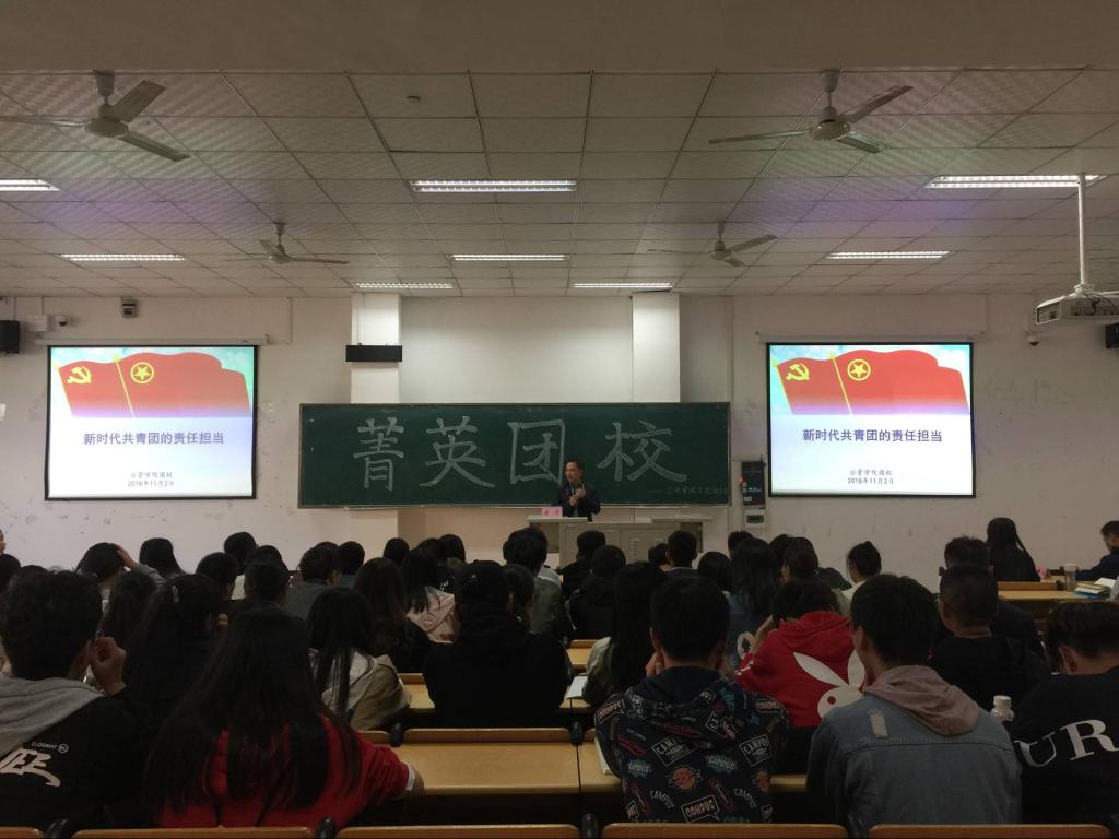 11月2日,学校团委书记黄宇为我院菁英团校全体学员作“新时代共青团的责任担当”专题讲座。讲座由学院团总支副书记孙静主持,全体团学干部参加。