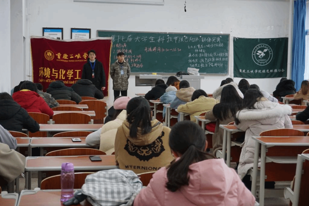 2018年12月16日,由团委、科研处主办,环境与化学工程学院团总支承办,大学生绿色环保协会、环境与化学工程学院团总支科创部协办的第十七届大学生科技节“绿色化学,环保实践”活动圆满完成。本次活动赛制分为初赛与决赛,参赛选手根据专业分为专业组和非专业组,此次活动从开始宣传到决赛结束,为期十五天。