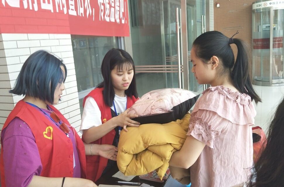 志愿者们对每一位前来捐衣的同学耐心引导进行信息登录,向他们表示诚挚的地感谢,并细心地对捐赠衣物进行分类装袋。