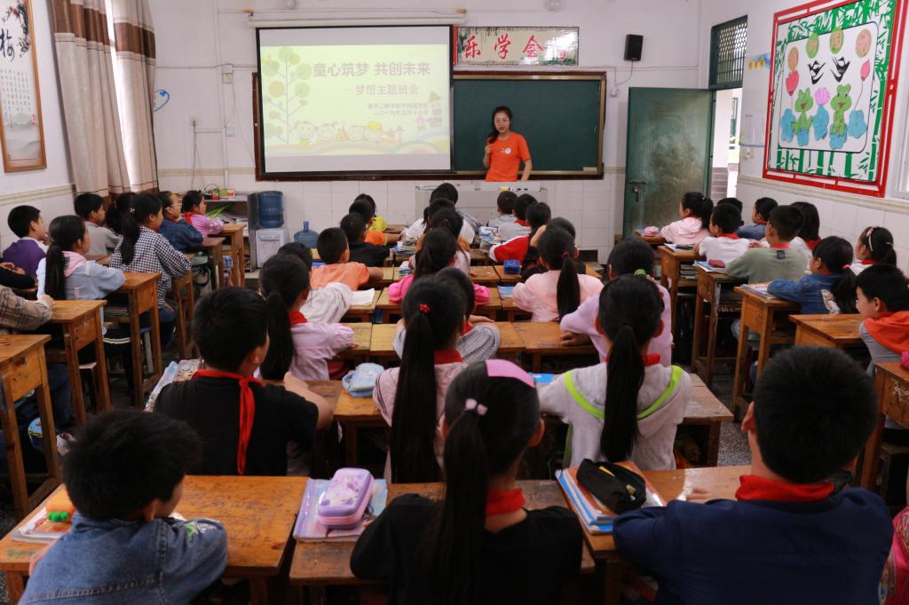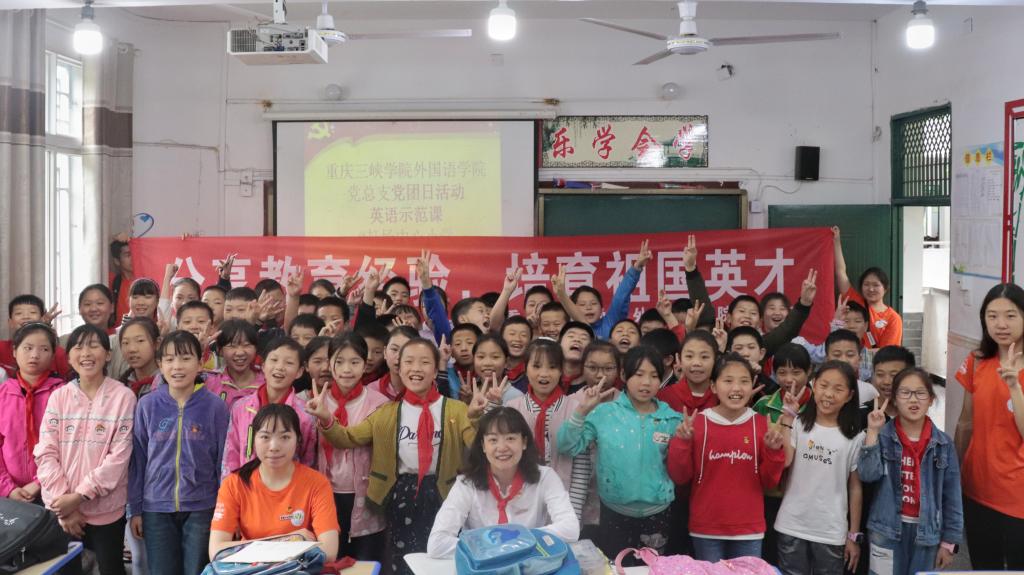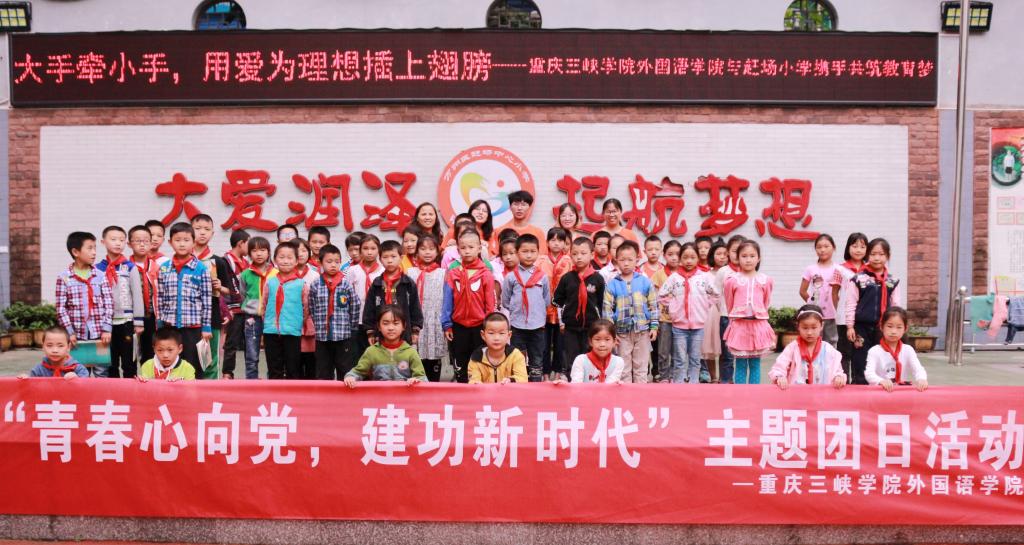 为积极响应团中央《共青团投身打赢脱贫攻坚战三年行动的意见》的号召,进一步发挥共青团组织优势,全力推进乡村振兴战略实施,助力脱贫攻坚,外国语学院团总支在党总支的带领下于5月16日上午在万州区龙驹镇赶场小学开展了“青春心向党•建功新时代”主题团日活动。我院教师党员、学生团员代表合计25人参加了此次活动。