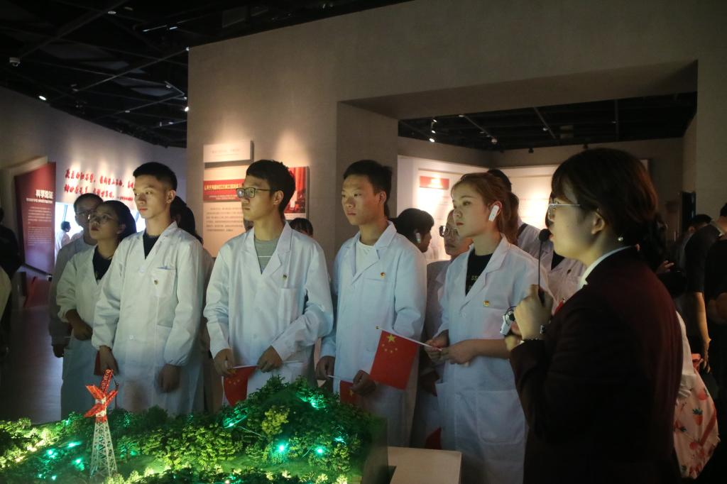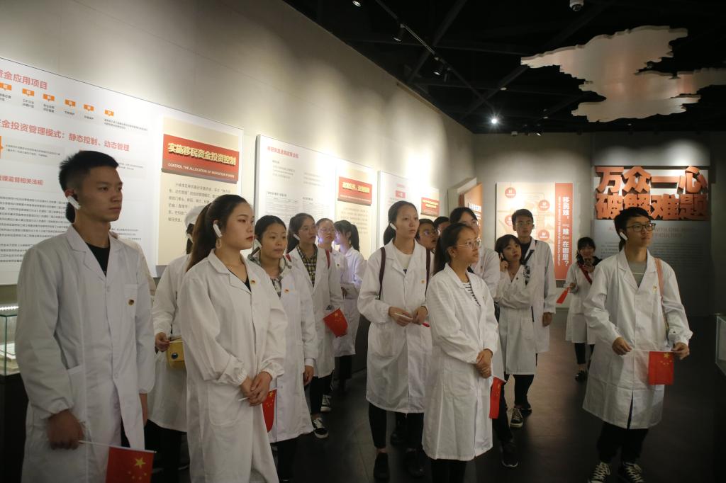 胸配团徽,手持小红旗,干部们整齐排列在纪念馆的阶梯前。在现场庄重肃穆的氛围中,团学干部们手挥红旗,齐声高唱《我和我的祖国》,环化青年学子的祝福回荡于纪念馆上空。随后,在纪念馆讲解员的带领下,团学干部参观了三峡移民纪念馆,纪念馆缘起、故乡、迁移、他们、新家、精神六大板块的展示,让干部们感受到了可歌可泣的三峡移民精神。