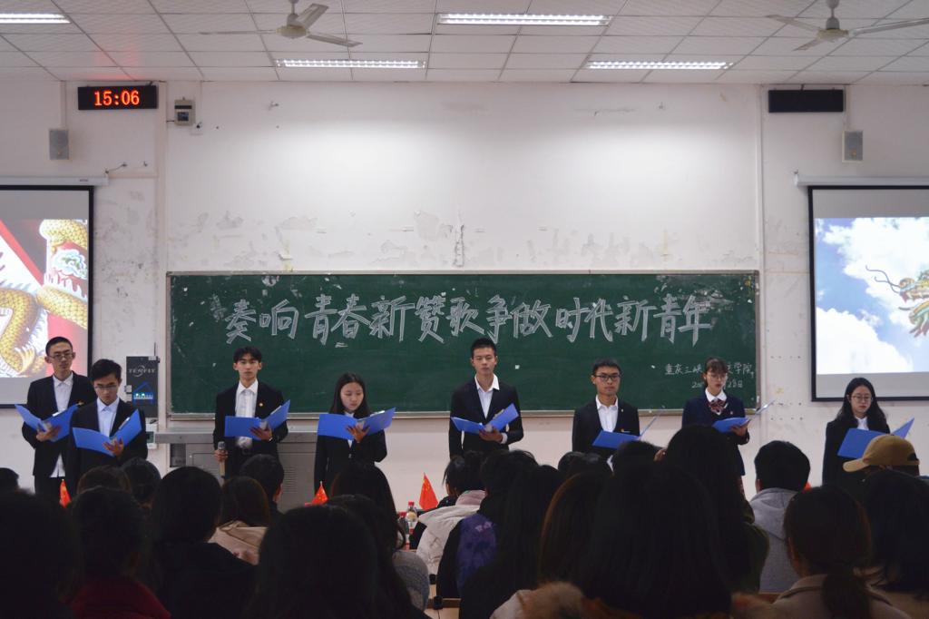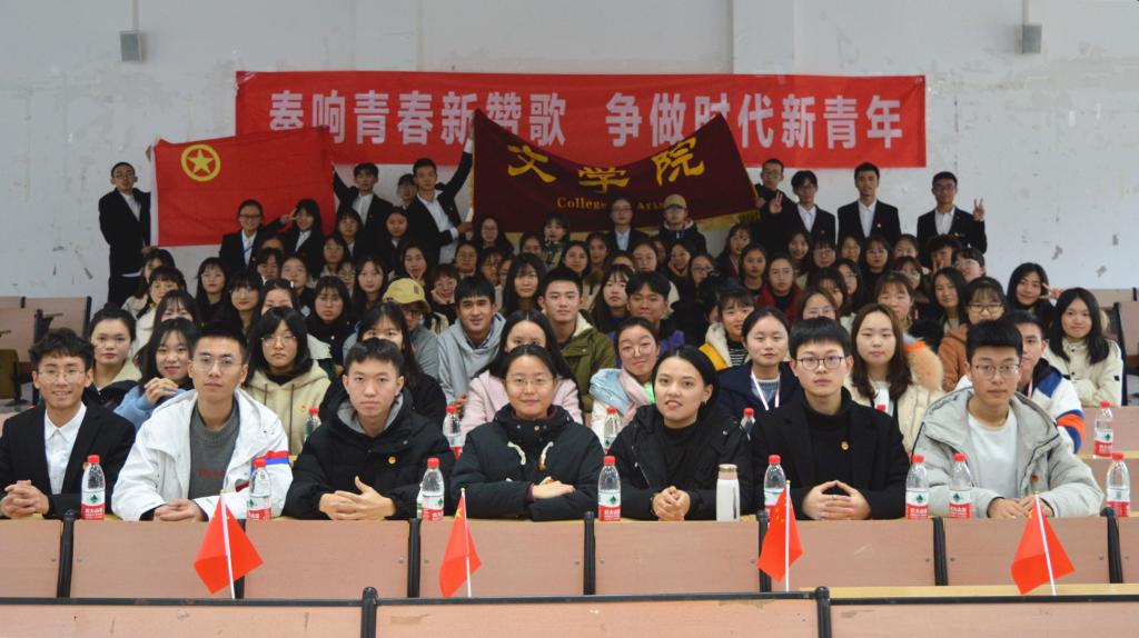 为引导青年学生树立远大理想,践行社会主义核心价值观,我院团总支于11月28日15:00在明辨楼2教101室开展了“奏响青春新赞歌,争做时代新青年”主题团日活动。学院团总支、学生会主席团成员及2019级汉语言文学(师范类)1班、2班全体团员参加了本次活动。