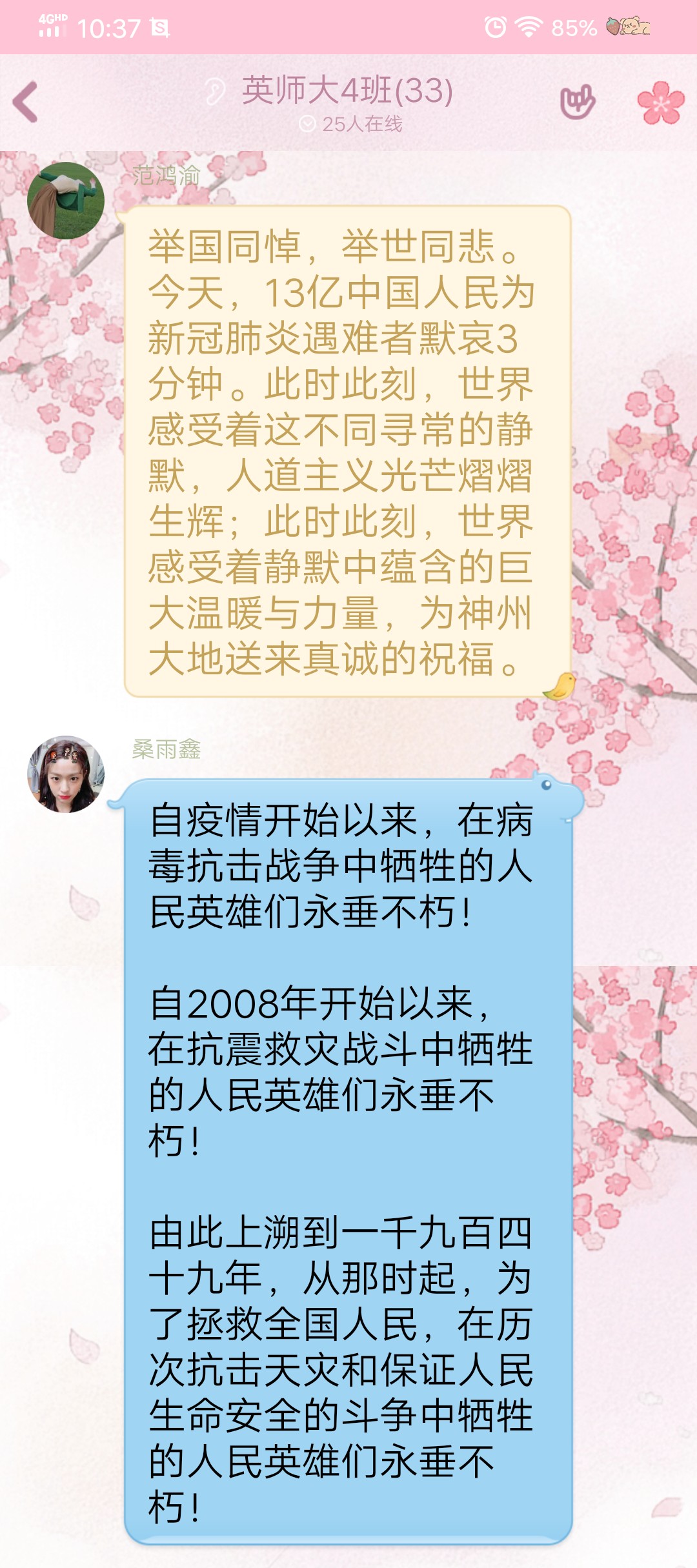 2018级日语班同学也分享道:“他们是英雄,他们是勇士。他们用行动,用身躯,筑起了保卫祖国的万里长城。正是有他们,这群背负了保卫人民的任务,毅然决然向防疫一线前行的逆行者,正是有他们,我们才能在家安然度过这个特殊的春节。向逆行者们致敬!向烈士们致敬!”是的,所有一线人员的付出与牺牲都不会被遗忘,历史不会忘记,家国不会,我们也不会。