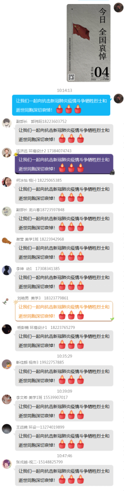 美术学院团总支组织全院团员青年积极观看、收听悼念活动直播,自发参与线上线下哀悼活动。他们通过起立默哀、向先贤先烈线上献花、抒写感言等形式,表达对抗击新冠肺炎疫情斗争牺牲烈士和逝世同胞的深切哀悼。