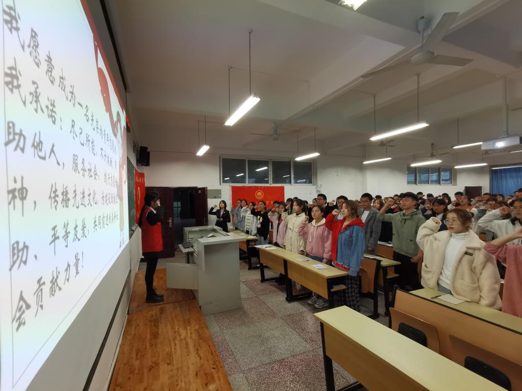 大会开始,播放公益宣传片,紧接青年志愿者协会会长带领大家回顾往期活动、预报后期活动,强调志愿活动注意事项及报名相关要求。随后,进行志愿者问答环节,测试大家对志愿者知识了解程度,增加志愿知识储备。接着,特邀嘉宾学长学姐分享志愿经历、志愿心得,让同学们学习如何以实际行动参与志愿服务。最后,现场所有青年志愿者宣誓,立志践行志愿精神,做一名合格志愿者。