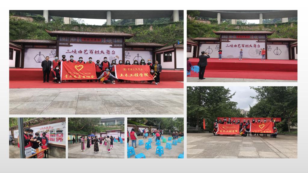 为助力万州区精神文明建设,弘扬志愿服务精神,10月18日上午,我院青年志愿者20余人深入太白社区志愿服务“三峡曲艺百姓大舞台”活动。