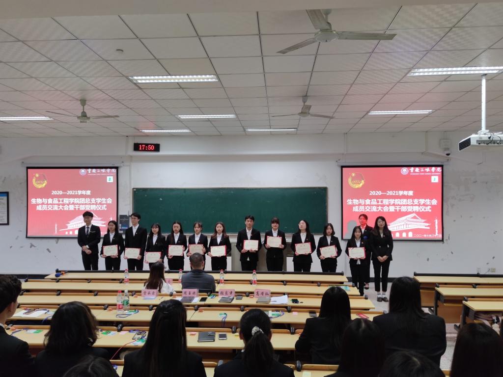 10月22日17:30,我院于明辨楼2栋207举行2020-2021学年度生物与食品工程学院团总支学生会成员交流大会暨受聘仪式。出席本次大会的有学院团总支副书记李华林老师,辅导员蒋园园老师及2020届团总支学生会全体成员。