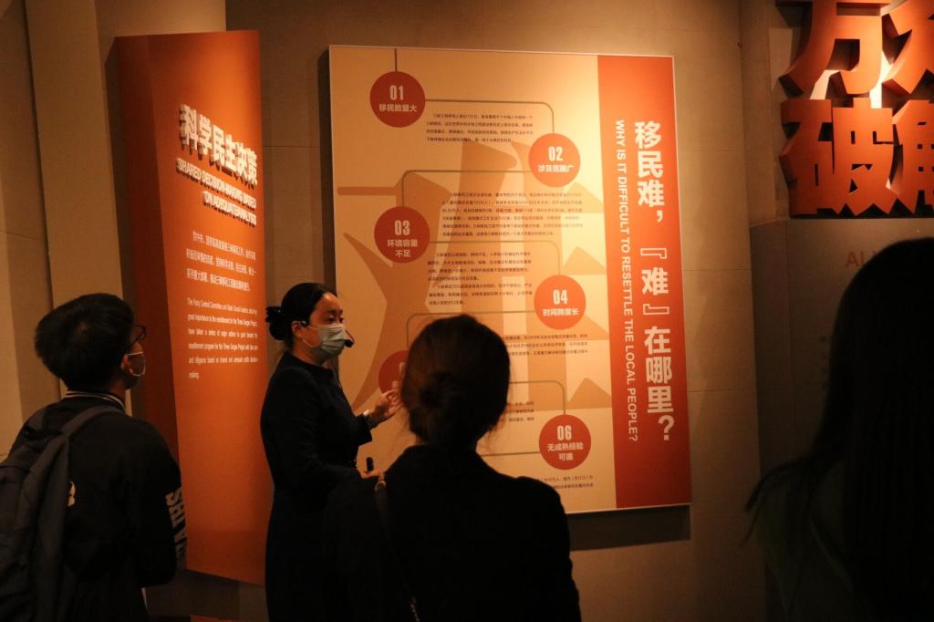 团日活动过程中,各位团员了解了三峡移民精神形成的时代背景,体验了三峡工程给库区人民生产生活带来的喜人变化。同学们在“伟大壮举,辉煌历程”三峡移民精神主题展前驻足;在“百年宏愿,筑梦三峡”段落中了解三峡工程的由来,从论证到实施的过程,感受中华民族从弱到强的嬗变;在“伟大壮举,百万移民”段落中了解三峡移民工程的辉煌壮举;在“万众一心,破解难题”段落中学习伟大的三峡移民精神;在“高峡平湖,沧桑巨变”段落中一览库区通过移民搬迁发生的沧桑巨变。