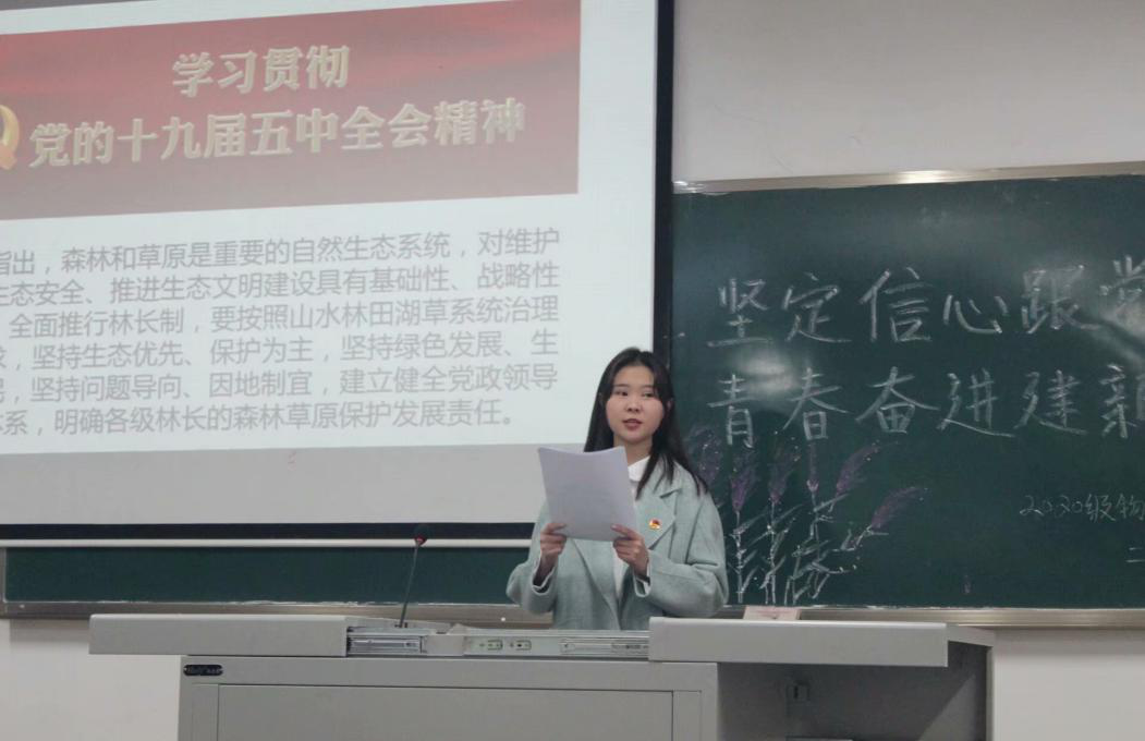 学院团总支组织部指导各班级团支部开展了“深入贯彻学习党的十九届五中全会精神”主题团日活动。各班级团支部精心筹备,认真梳理学习全会精神的相关信息资料,各团支部通过朗诵、歌唱、情景剧等多种形式,让各青年团员从多角度学习并思考了党的十九届五中全会精神,使会议精神内化于心,外化于行。此外,合理运用学院QQ公众号在QQ空间等新媒体平台对党的十九届五中全会的相关精神进行报道,动员全院同学了解会议提到的坚定发展信心、明确发展目标、强化责任担当等多方面要义。