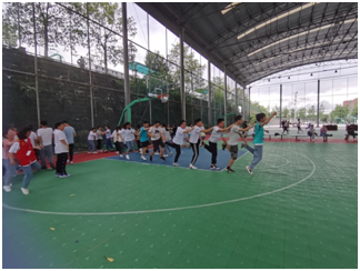 活动的项目共五项,分别是“五人六足、爱的抱抱、完全相信你、计时跳绳和火车赛跑”,同学们对活动中的每个项目都跃跃欲试,现场气氛热烈活泼,其中,“爱的抱抱”这一项目将活动推向高潮。同学们在赛场上洋溢着青春,挥洒着汗水,充分展示了新时代大学生的生命朝气与活力。