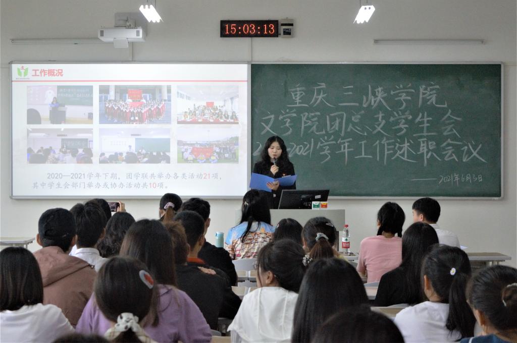 为持续深入贯彻落实团中央和全国学联对高校学生会深化改革的相关要求,进一步推动团总支学生会管理工作合理化、规范化,我院于6月3日在博学楼1栋105室举行文学院团总支学生会述职报告大会。我院学工办主任兼团总支书记熊维娟、团总支副书记刘钰琴、主席团全体成员、各部门负责人及工作人员参加本次会议。