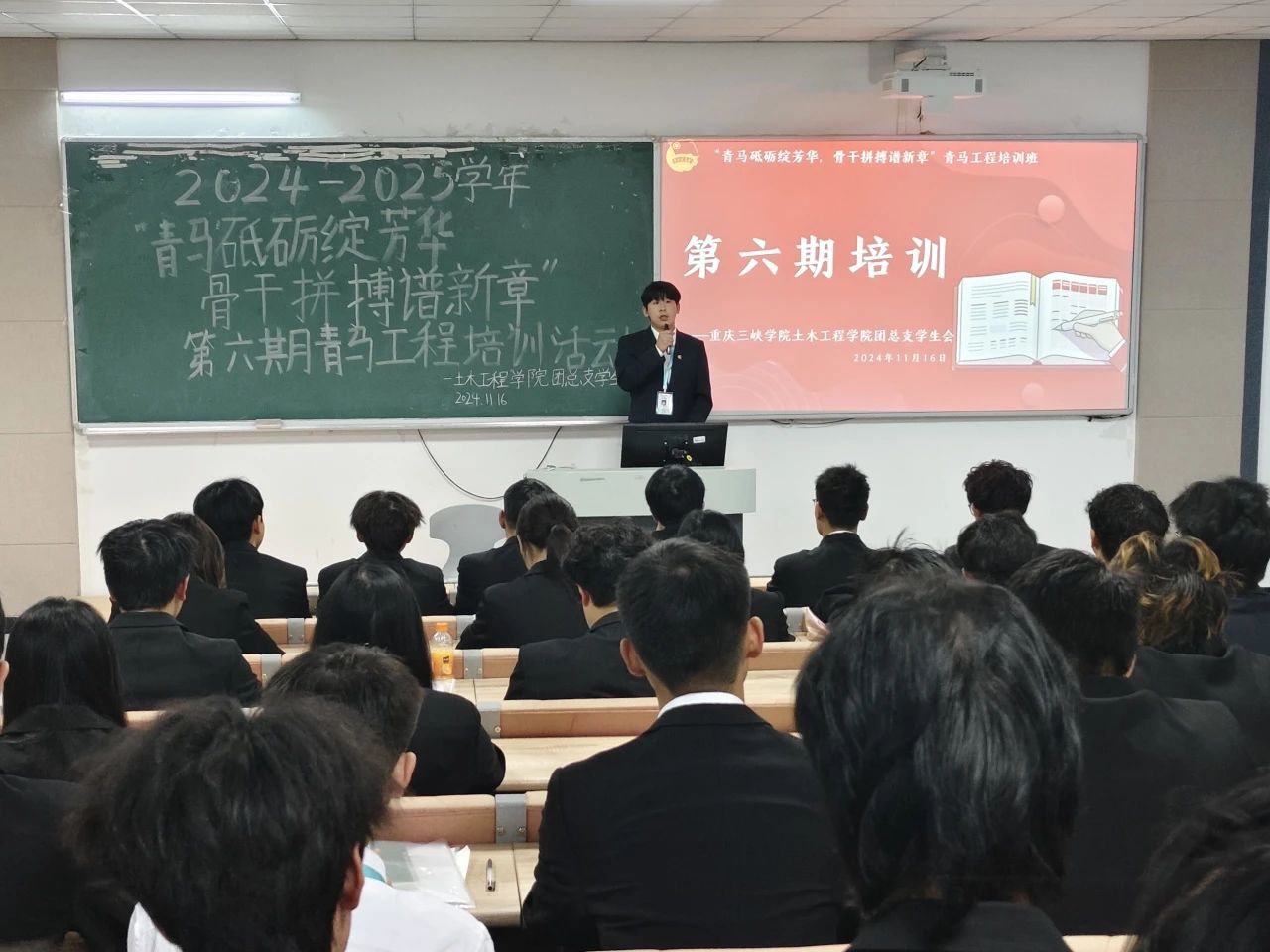1116日上午,土木工程学院团总支在博学楼1栋101教室成功举办“青马砥砺绽芳华,骨干拼搏谱新章”第六期青马工程培训。团总支学生会办公室负责人和新媒体中心负责人讲解公文写作的相关规范。土木工程学院一直高度重视学生管理工作,以“青马工程”为载体,不断加强对青年学生的思想政治教育,进一步引导学子深化思想认识,旨在通过针对性的系统化培训促进学生全面发展。