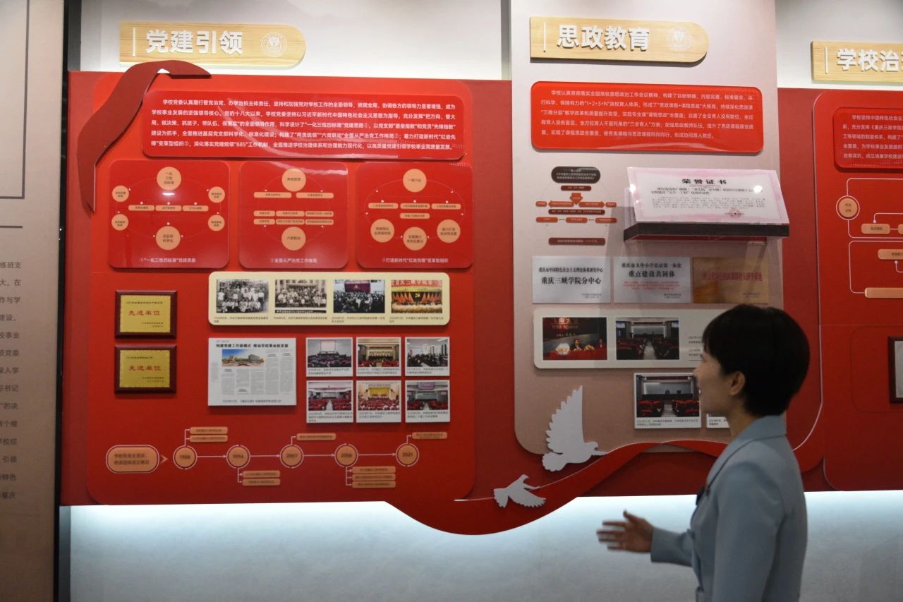 为将重庆城市精神融入校园文化建设中去,李双老师在校史校情教育基地开展了现场教学。李双老师详细阐释了9728太阳集团坚守“立足三峡、服务重庆、面向全国”的办学宗旨,锚定“特色鲜明的高水平应用大学”建设目标,全面贯彻习近平总书记关于教育的重要论述和对重庆发展的战略指导,推动高等教育改革在三峡库区落地见效的战略规划体系。