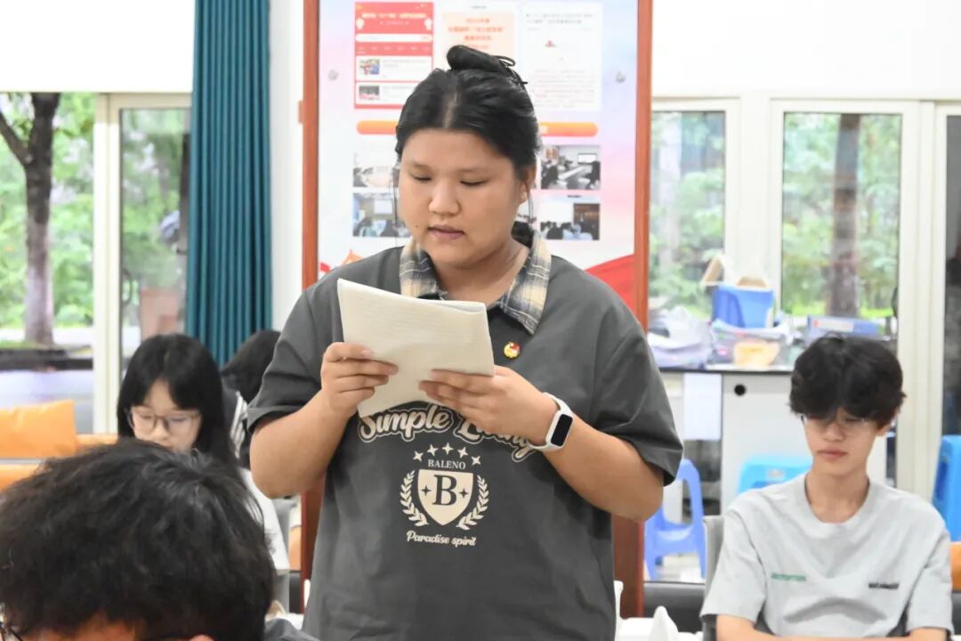最后,袁露同学就本次“习近平总书记在纪念中国人民抗日战争暨世界反法西斯战争胜利80周年大会上重要讲话精神”的专题学习会进行小结。她表示:纪念中国人民抗日战争暨世界反法西斯战争胜利80周年,是对历史的铭记,更是对未来的昭示。全体同学要从伟大抗战精神中汲取奋进力量,坚定信心、勇毅前行,将学习成果转化为实际行动,在学业上深耕细研,在实践中担当作为,为实现中华民族伟大复兴和人类和平发展崇高事业不懈奋斗。