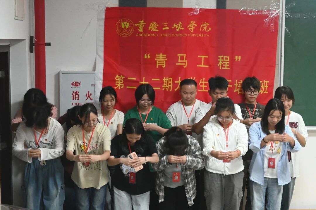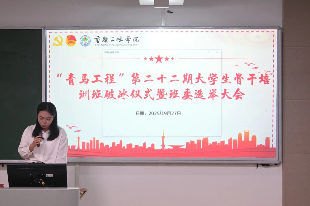 第二十一期 “大骨班” 学员向诗怡与黄智涵两位学姐,结合自身青马学员经历分享成长感悟。向诗怡学姐提及,在三峡移民纪念馆实践中体会 “家国大义”,在潼南区蔬菜产业调研中明白 “扎根大地才能有所作为”,并对第二十二期学员提出深耕学习实践、扛起责任担当、珍惜同行伙伴的建议。黄智涵学姐则从理论学习、实践锻炼、精神传承三方面展开,介绍 “青马工程” 通过校史馆参观、专题讲座等筑牢学员理想信念,鼓励新学员以信仰为帆、实干为桨,在青春赛道书写 “请党放心,强国有我” 的时代华章。
