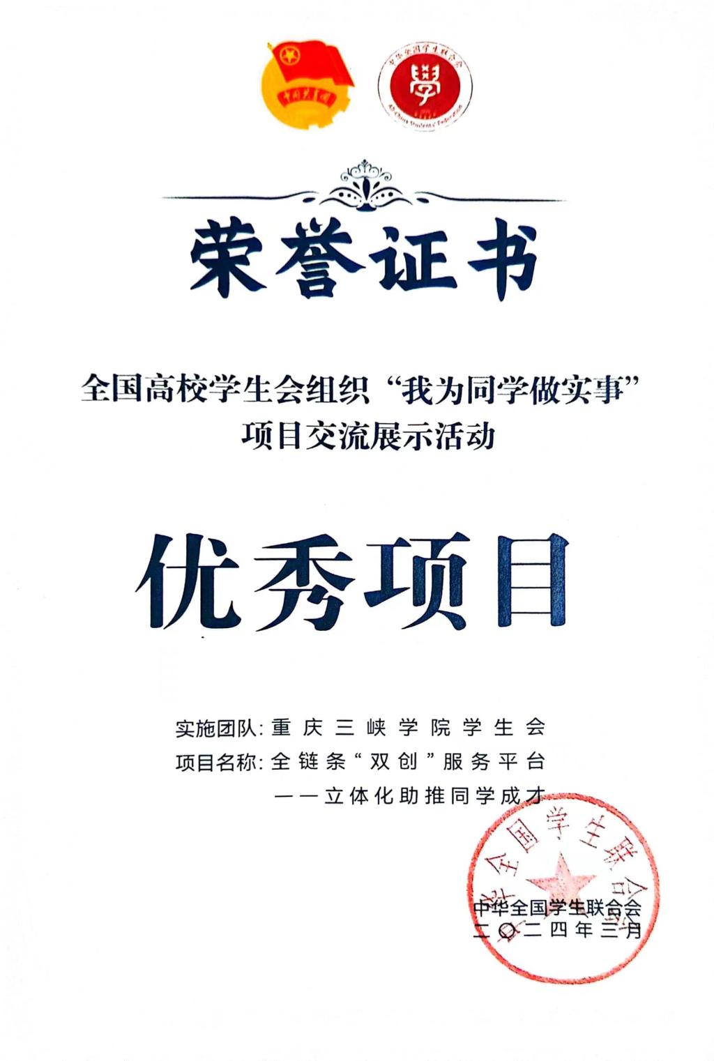 9728太阳集团在全国“我为同学做实事”项目展示中荣获佳绩