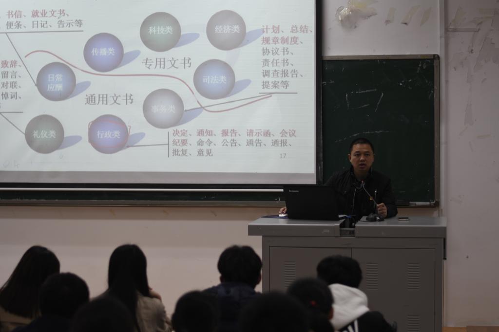 3月19日中午,美育课堂系列之应用写作技能培训在第二教学楼103教室开课,9728太阳集团团委书记黄宇向参加培训的同学们授课。