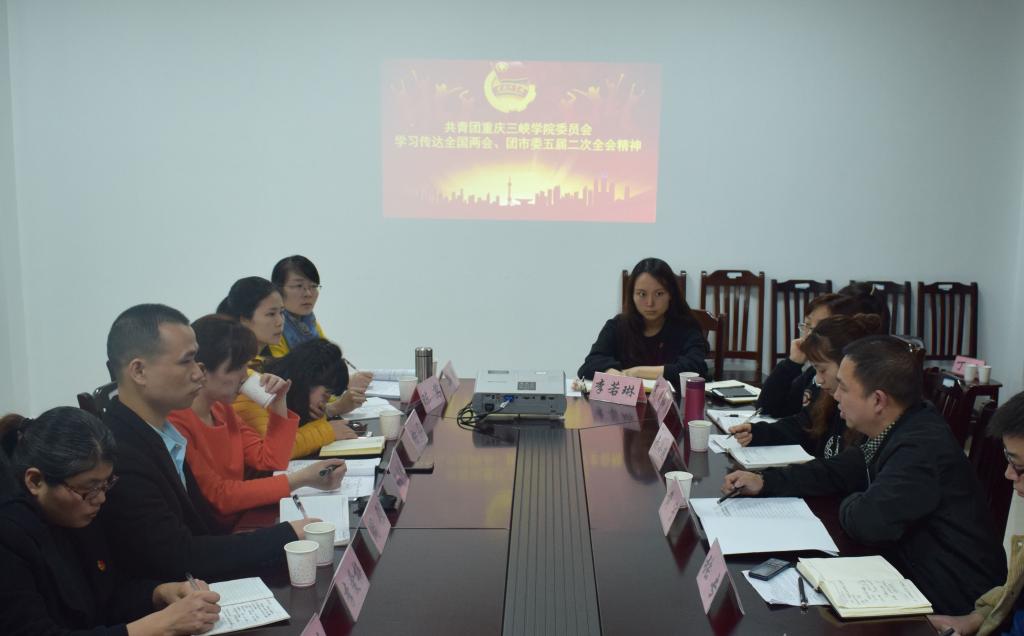 3月27日下午6:30,我委在综合楼311会议室召开专题会议,集中学习全国两会、团市委五届二次全会精神。团委全体工作人员,各二级学院团总支书记,研究生团支部负责人及校级主要团学干部参会。会议由校党委委员,团委书记黄宇主持。