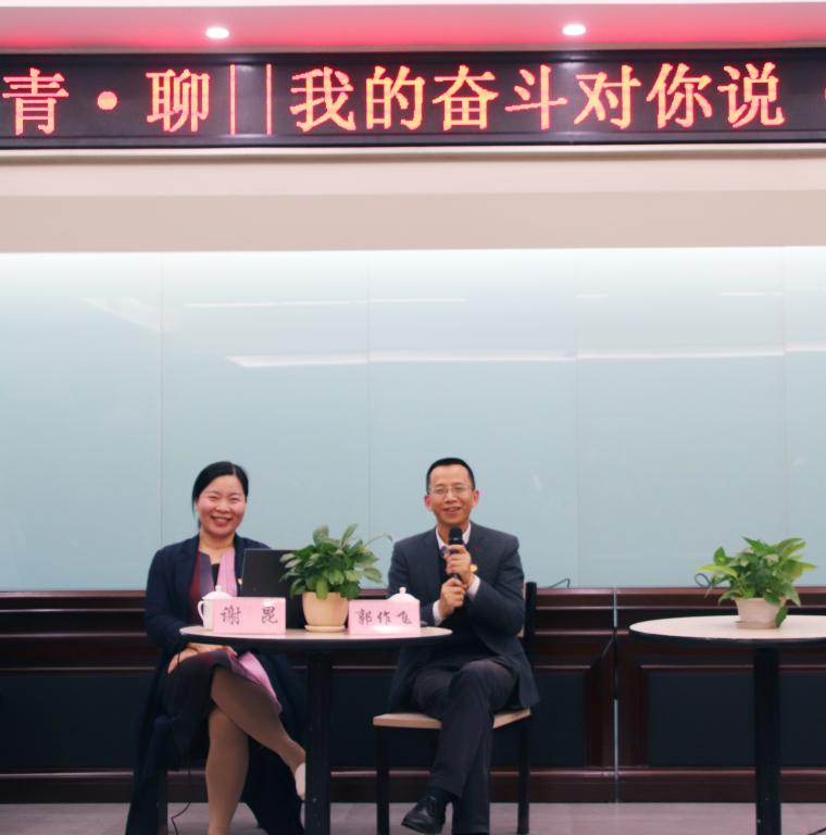 4月24日晚,“青·聊”活动之我的奋斗对你说(第二场)在综合楼二楼连廊会议厅热情开聊。青年教授郭作飞(文学院院长)和谢昆(环化学院党总支书记)作为聊天嘉宾与广大青年学子面对面畅谈成长的经历,答疑学习生活中的困惑。团委书记黄宇主持。
