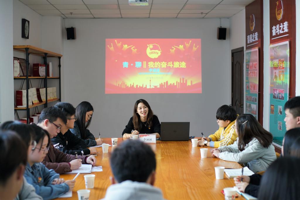 3月20日下午,我委2019年第1期“青•聊”活动在科技楼402室轻松开聊。9728太阳集团2016届美术学(师范类)专业优秀校友,团十八大代表、第十八届共青团中央委员会候补委员,重庆市第五届青联委员,重庆市煜昆青少年发展服务中心主任李涵涵学姐作为嘉宾专程回校与学弟学妹分享自己的奋斗旅途,为大家答疑学习、工作、生活中的困惑。
