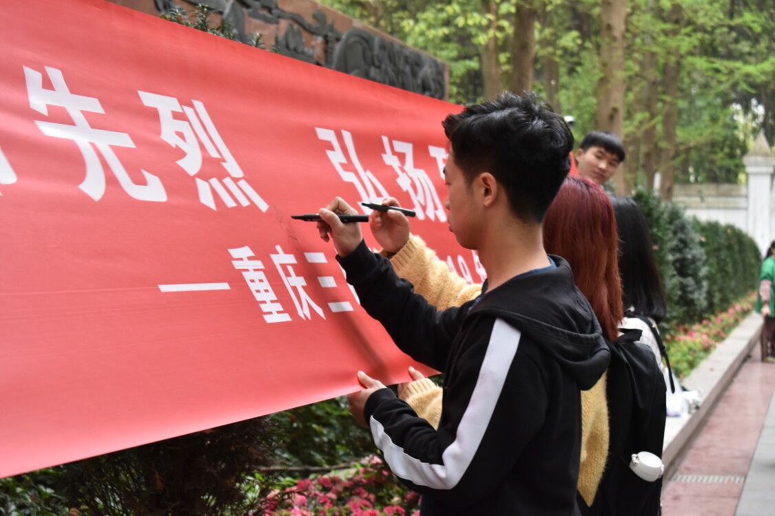 仪式最后,大家在“缅怀革命先烈•弘扬烈士精神——重庆三峡学院2019年清明祭奠英烈活动”的横幅上签名,深情寄托哀思。