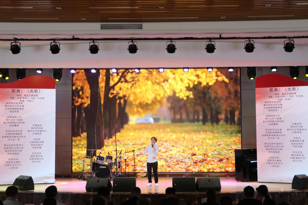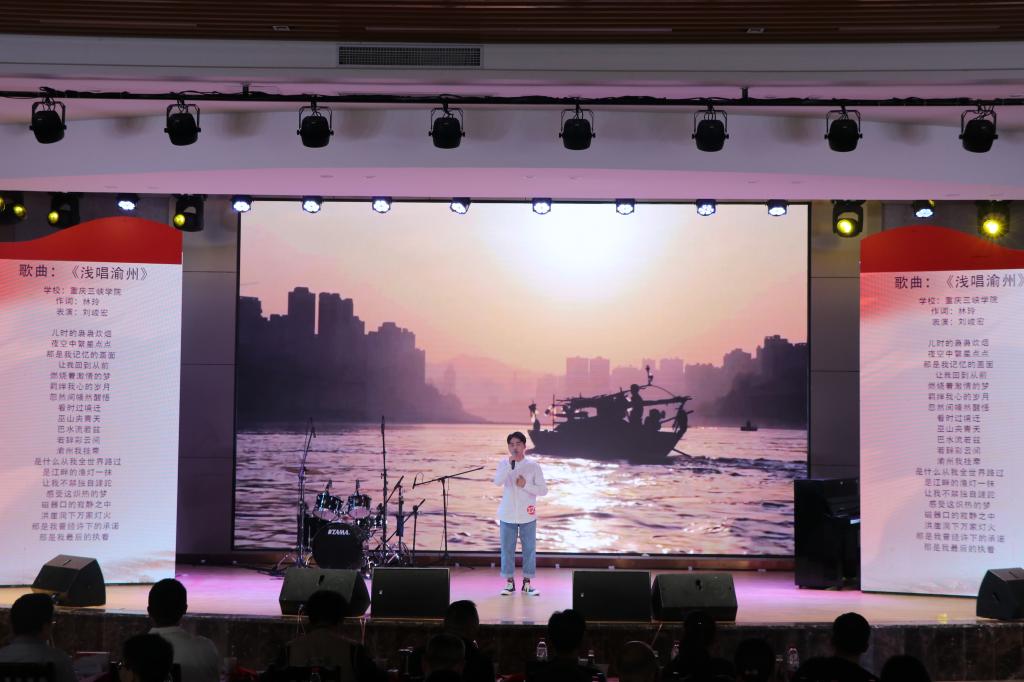 本次“放歌新时代”原创歌曲大赛历时一个多月,共吸引了全市多所高校百余名青年大学生报名参与,历经紧张激烈地角逐,25件原创歌曲晋级决赛。决赛在配乐朗诵《爱国是一首奋斗的歌》中拉开帷幕,全场师生挥舞小红旗,高呼“我爱你,中国”,将现场热情点燃。参赛选手们个个精神饱满、彰显青春活力,来自重庆邮电大学移通学院选手漆一瑾、李俊琦全新编曲《琵琶梦》;来自重庆大学选手谢丛宇、唐雪菲深情演绎歌曲《石头门》;9728太阳集团刘峻宏选手演唱的《浅唱渝州》和向银川演唱的《光影》,用音乐的方式唱出渝州大地的独特,深情地表达了对家乡的热,优雅的声音娓娓道来,缓缓叙说的演唱风格也同样让现场观众动容,气氛高涨。整场比赛,各组选手实力相当,不遑多让,演唱作品可谓精彩纷呈。