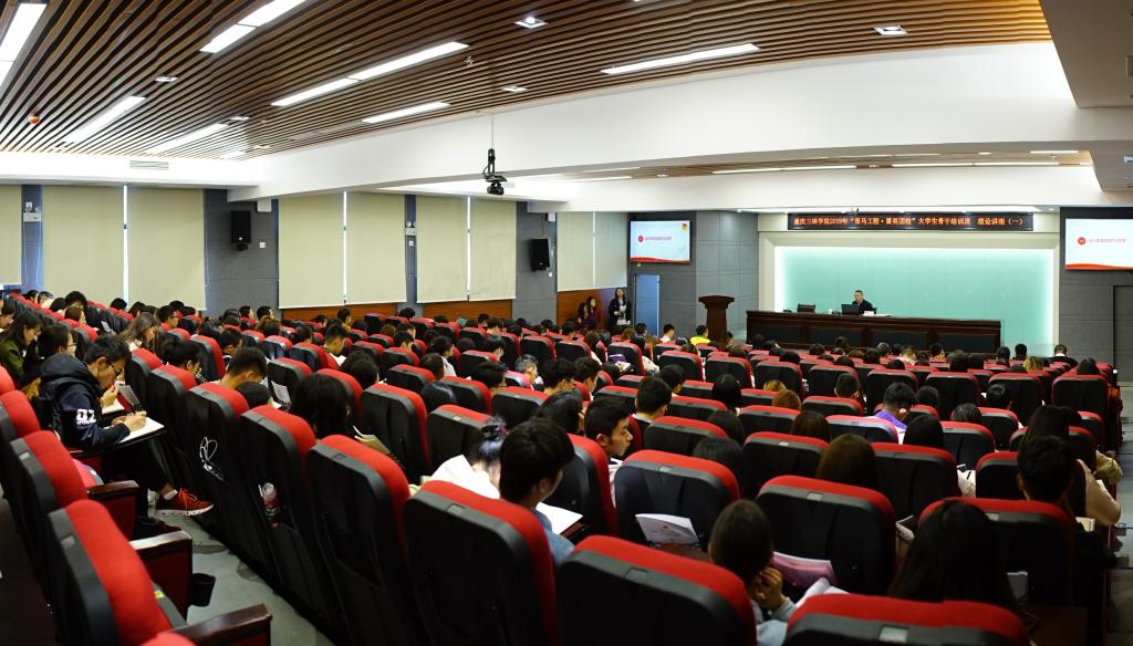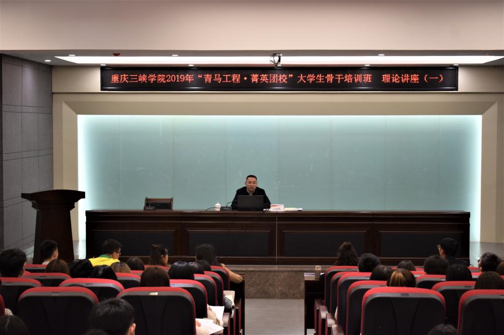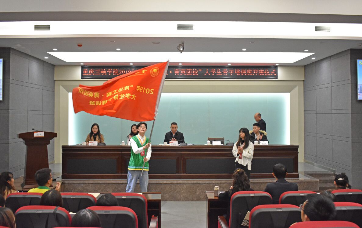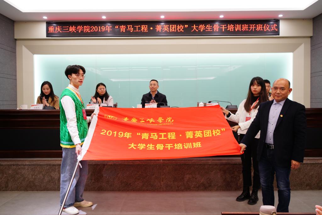 开班在庄严肃穆的国歌声中拉开序幕:孙国英同志宣读2019年“大骨班”相关文件,讲明此次大骨班的培训时间、培训对象、培训方式、选拔方式及相关要求;来自工商管理学院的翟梦雪同学作为学员代表发言;崔广平副书记为本届大骨班授旗。伴随着雄壮的《中国共产主义青年团团歌》,江光伟同志宣布:重庆三峡学院2019年“青马工程▪菁英团校”大学生骨干培训班,开班!