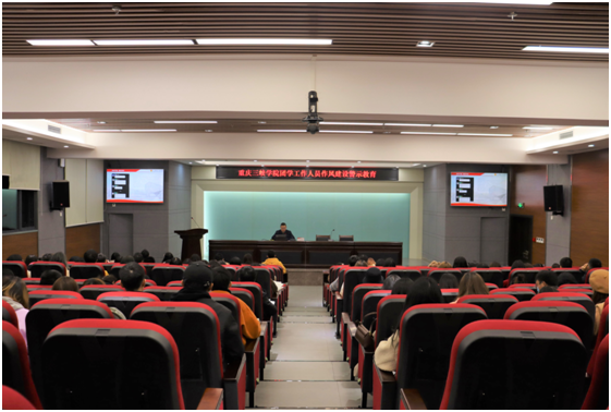 按全国学联秘书处及重庆市学联相关工作要求,11月26日晚,9728太阳集团团学组织工作人员作风建设警示教育专题教育会在科技楼连廊会议室召开。校、院两级团学组织一百余名负责人代表参加本次专题会,校团委副书记王峰老师主持会议。