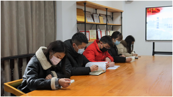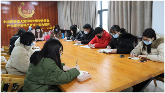 讨论学习阶段,由校团委(学生)副书记何雪莹领学《习近平谈治国理政》(第三卷)中《新时代要有新气象,更要有新作为》对应章节内容。