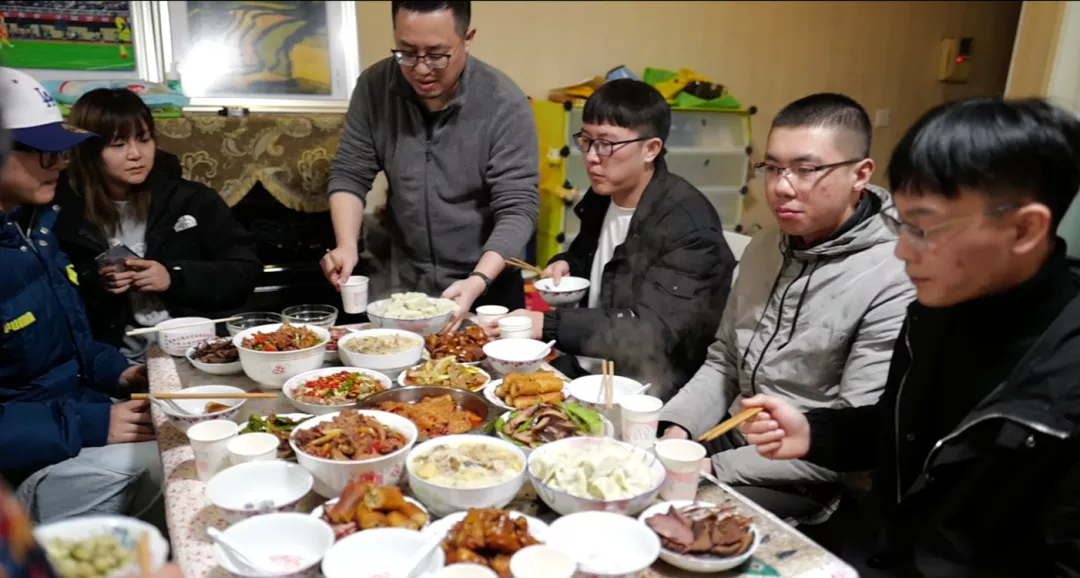 此外,学校青年教师史宗历为留校过年的青年朋友们亲手做一顿团年饭,让他们在学校依然感受到家的温暖。炸春卷、粉蒸肉、香肠腊肉……满桌的美味佳肴,吸引着学生们的味蕾。吃完团年饭,学生们也拨通了家人的微信视频,家长们纷纷感谢学校的热情款待,让孩子感受到家的亲切与温暖。