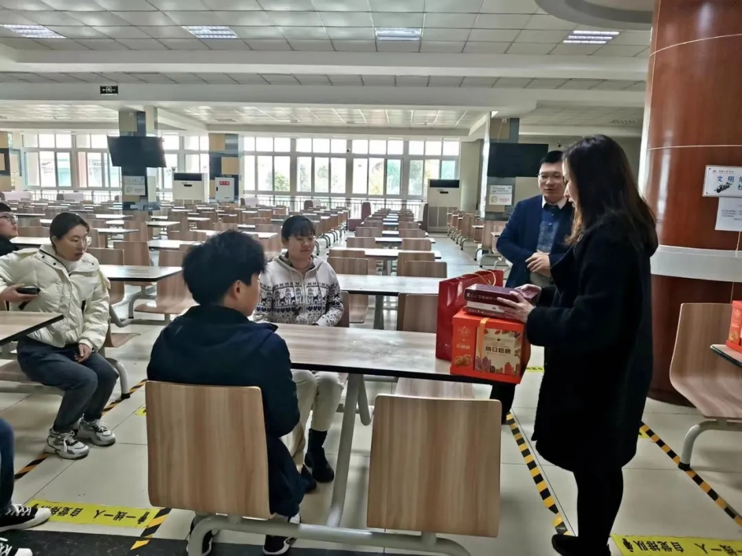 2月9日上午,学校团委主要负责同志为留校青年学子们派送了新春慰问礼物,并衷心祝福大家“学业有成、身体健康、阖家幸福、牛年大吉”,与留校青年学生拉进距离,让他们度过一个欢乐祥和、健康安全的春节和寒假。留校学生们均表示“就地过年”并不孤单,他们将利用好假期,在学校度过一个充实而有意义的寒假。