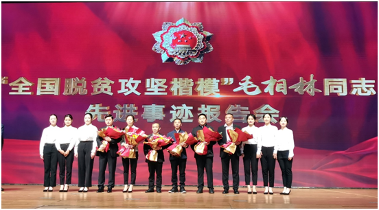 4月26日上午,由万州区委宣传部、区扶贫办、区人力社保局联合组建“全国脱贫攻坚楷模”毛相林同志先进事迹巡回报告会在万州大会堂举行。