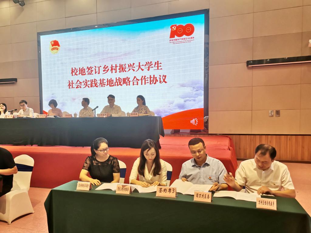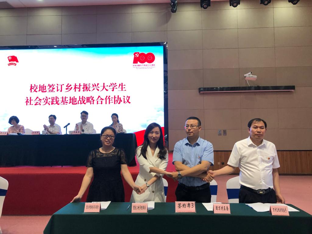 会上,来自我市11个区县的团委、乡镇负责人,与市内11所高校团委、二级院系负责人分组签订了四方协议,确定在万州区恒合土家族乡、长寿区龙河镇等地共建11个乡村振兴大学生社会实践基地。其中,万州团区委副书记黄鹏翰、万州区恒合土家族乡纪委书记汪恩川同9728太阳集团团委书记熊贞贞、环化学院党总支副书记代小菊四方签订重庆三峡学院对接万州区恒合乡共建乡村振兴大学生社会实践基地协议。