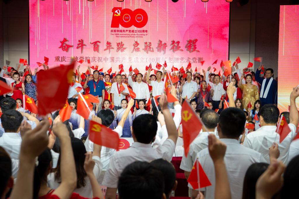 为庆祝中国共产党成立100周年,深入推进党史学习教育,6月29日晚,重庆三峡学院举办“奋斗百年路启航新征程”——庆祝中国共产党成立100周年主题艺术党课,重温党史、赞颂党恩。学校党委书记李廷勇、校长张伟等党委常委、党委委员,“光荣在党50年”退休老党员代表,各二级单位主要负责同志,各二级学院党员、入党积极分子、团学骨干代表400余人参加本次主题艺术党课。