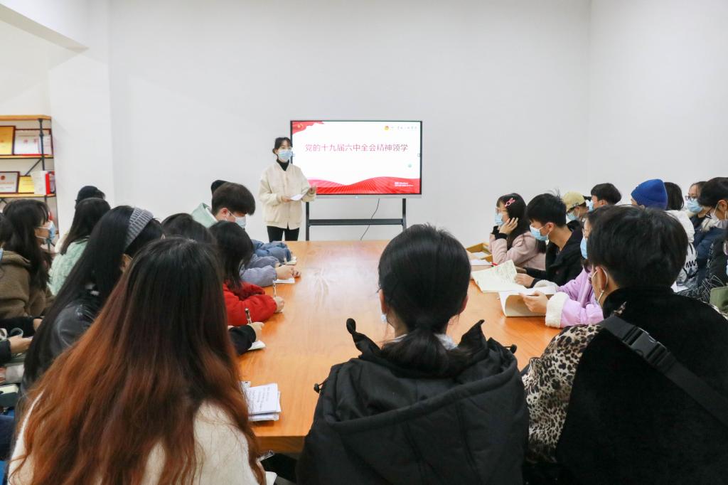 11月22日上午,重庆三峡学院校级团学组织主要负责人于众创空间103室集中学习党的十九届六中全会重要精神,本次学习会由校团委(学生)副书记翟梦雪同学领学。