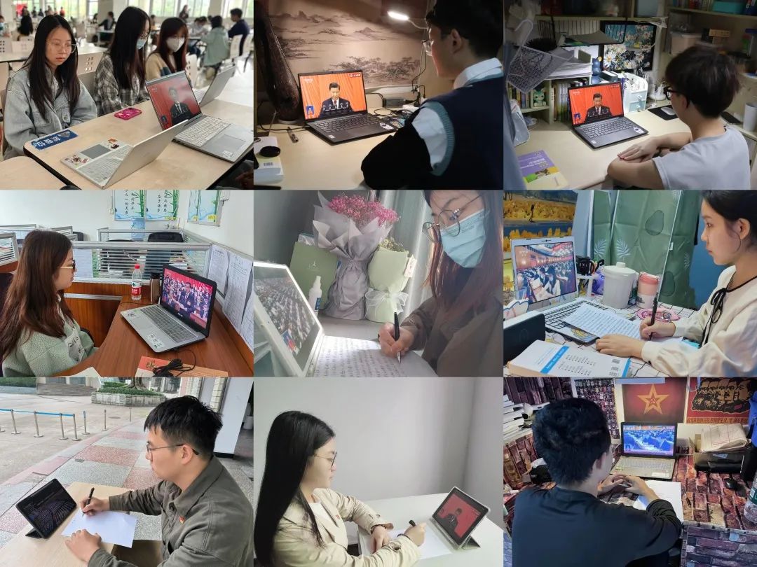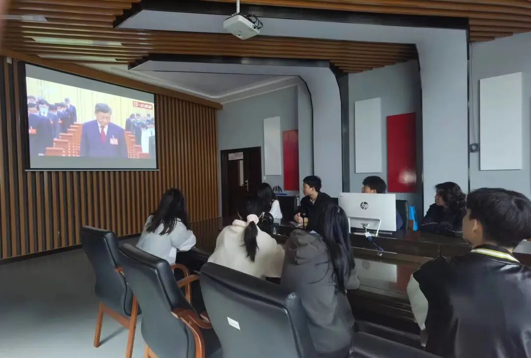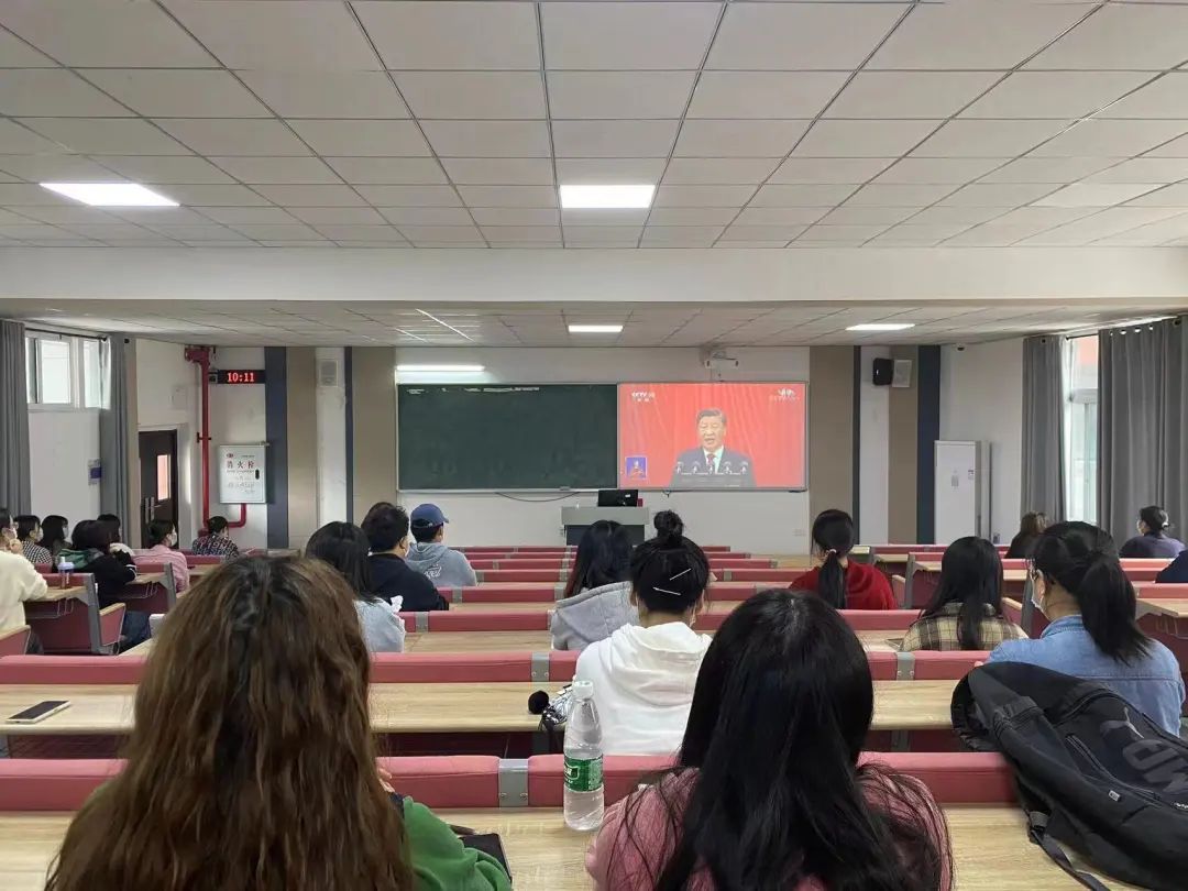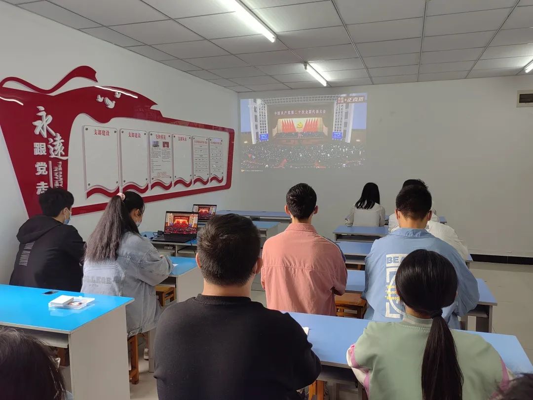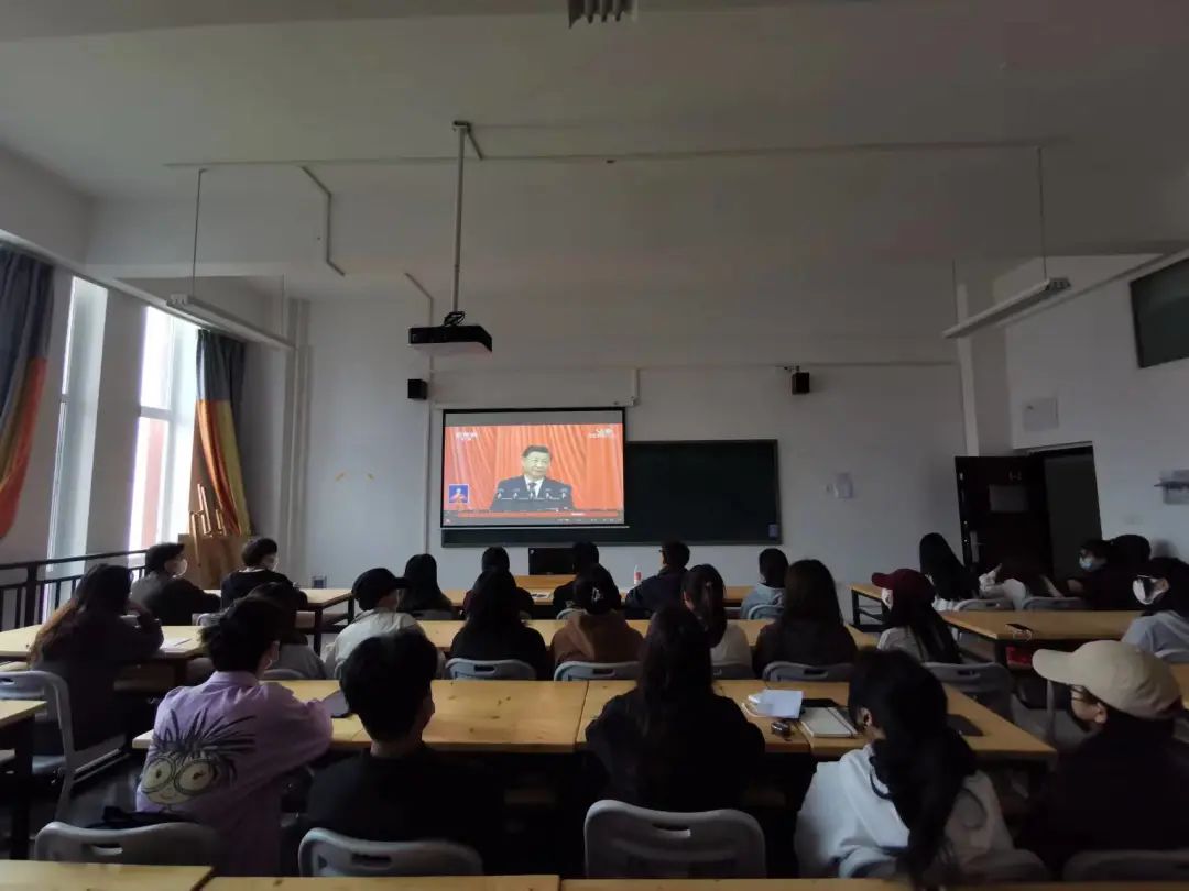 9728太阳集团团委组织团员青年集中观看中国共产党第二十次全国代表大会开幕会,分为主会场(众创空间103室)、分会场(各二级学院团学阵地)同步进行。每一名青年师生聚精会神听报告、全神贯注做笔记,大家都倍感振奋,深受鼓舞。