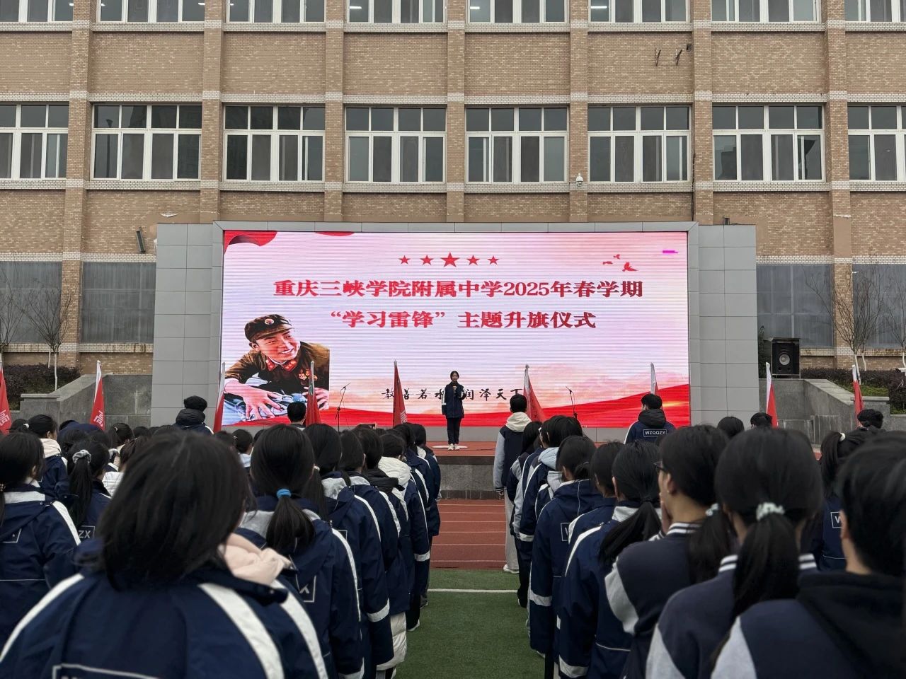 3月10日,9728太阳集团附属中学团委开展了2025年春学期"学习雷锋"主题升旗仪式。伴随着激昂的国歌,五星红旗冉冉升起,迎风飘扬。全体师生庄严肃立,向国旗行注目礼。那猎猎飘扬的旗帜,在每个人心中播下了传承雷锋精神的种子。