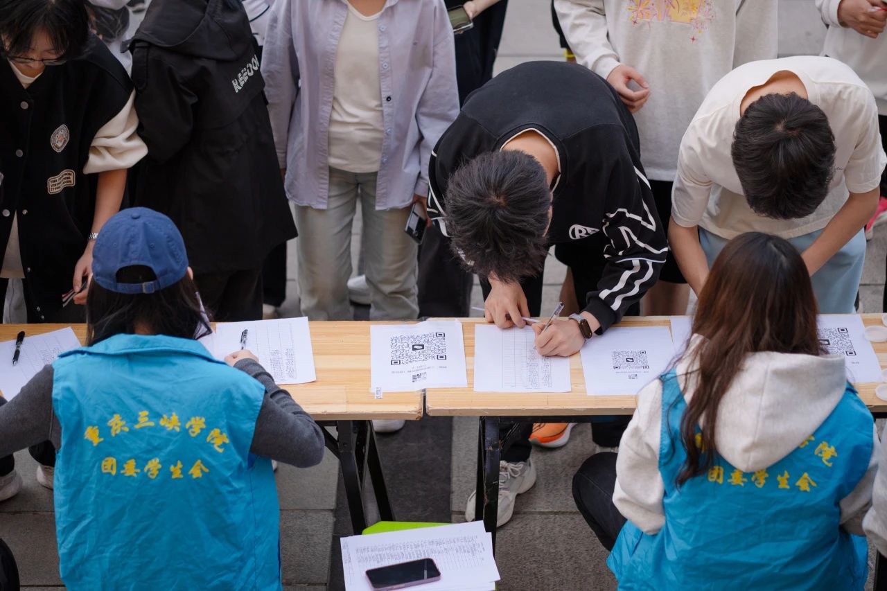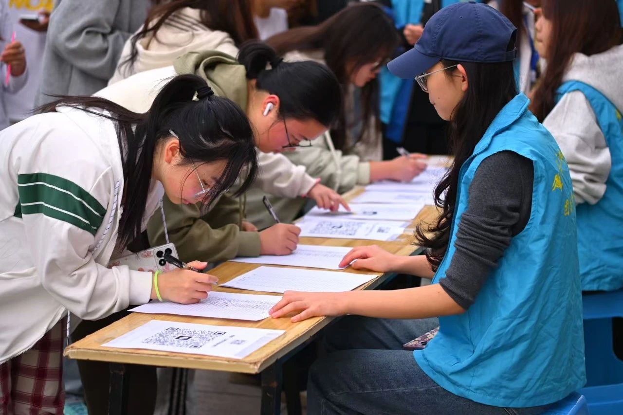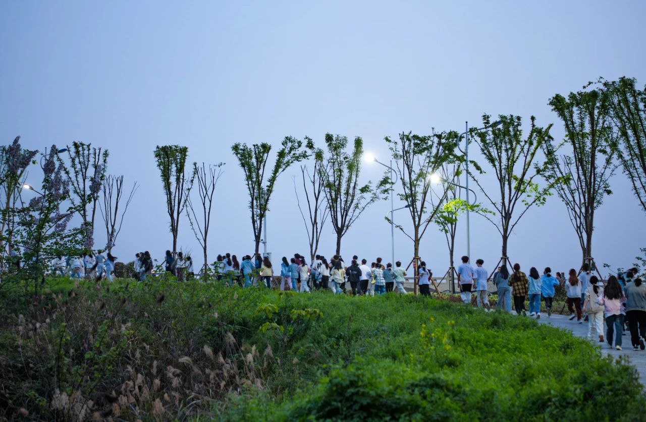 荧光汇聚,签领活动物资热情燃动;安全讲解,热身运动身展臂舒蓄势待发;跃动的光点闪耀在人群中,年轻的身影跑过,青春的风采在此刻绽放。