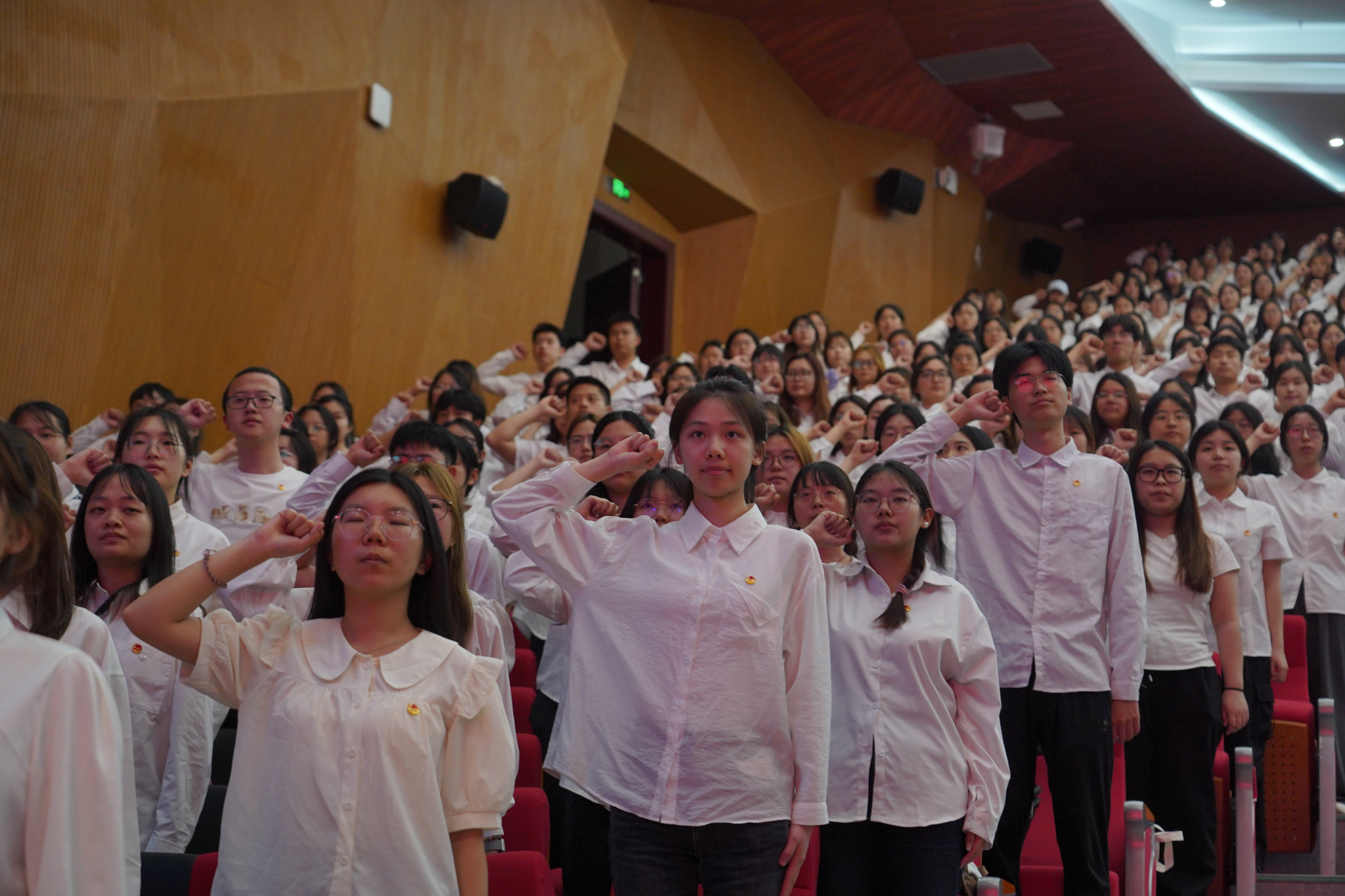 主题团日活动在激昂的《我爱你中国》表演中拉开帷幕,优秀学生代表与新团员代表相继发言,展现青春担当与奋进决心。