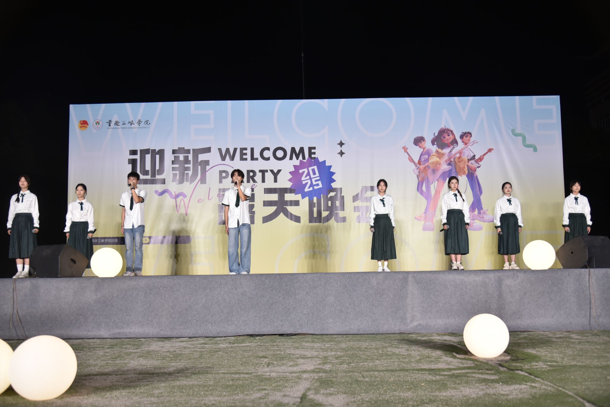 歌曲演唱、诗歌朗诵、舞蹈表演、器乐合奏等 11 个精心编排的节目依次呈现,现场掌声经久不息、欢呼声此起彼伏,沙龙校区运动场化作一片涌动着青春朝气的欢乐海洋,初入校园的新生们直观感受到三峡学院的青春活力与温度。